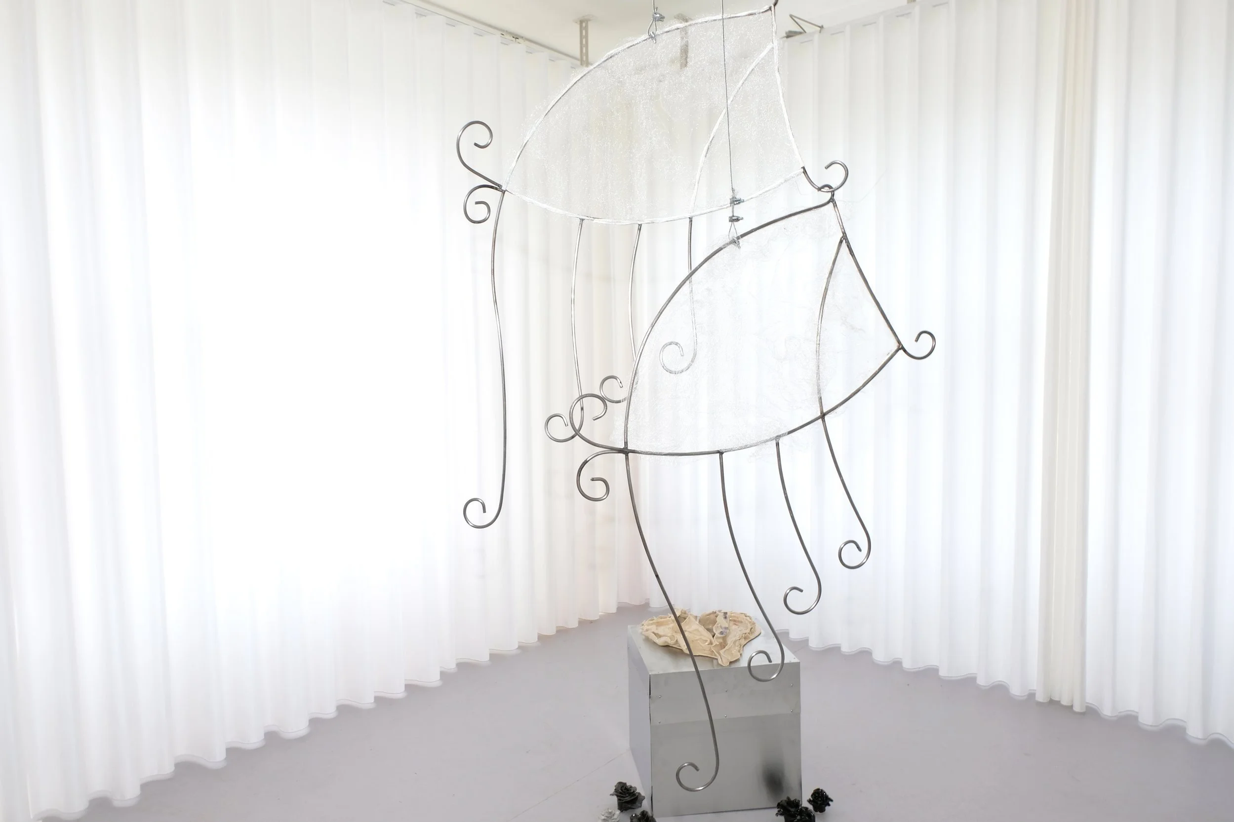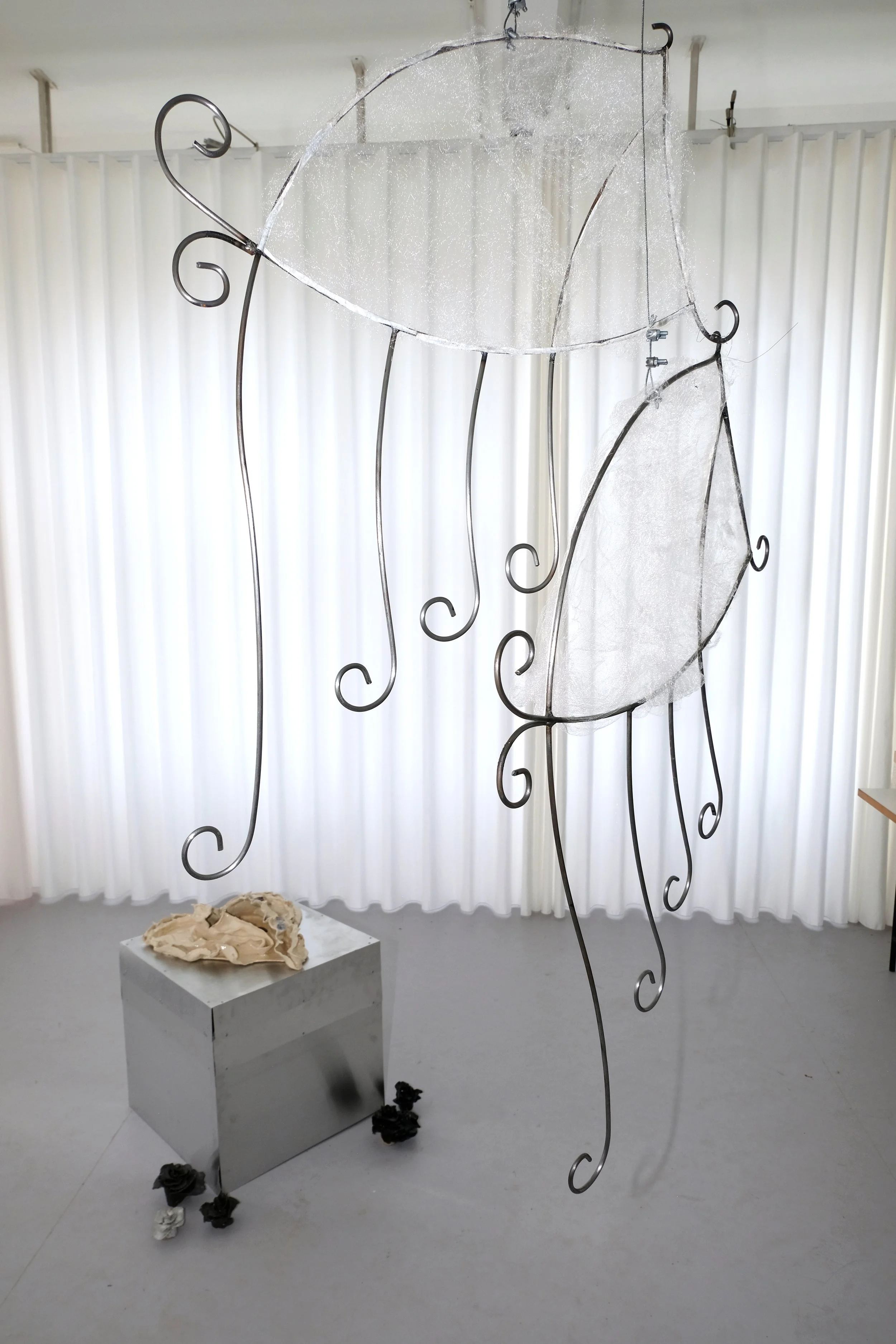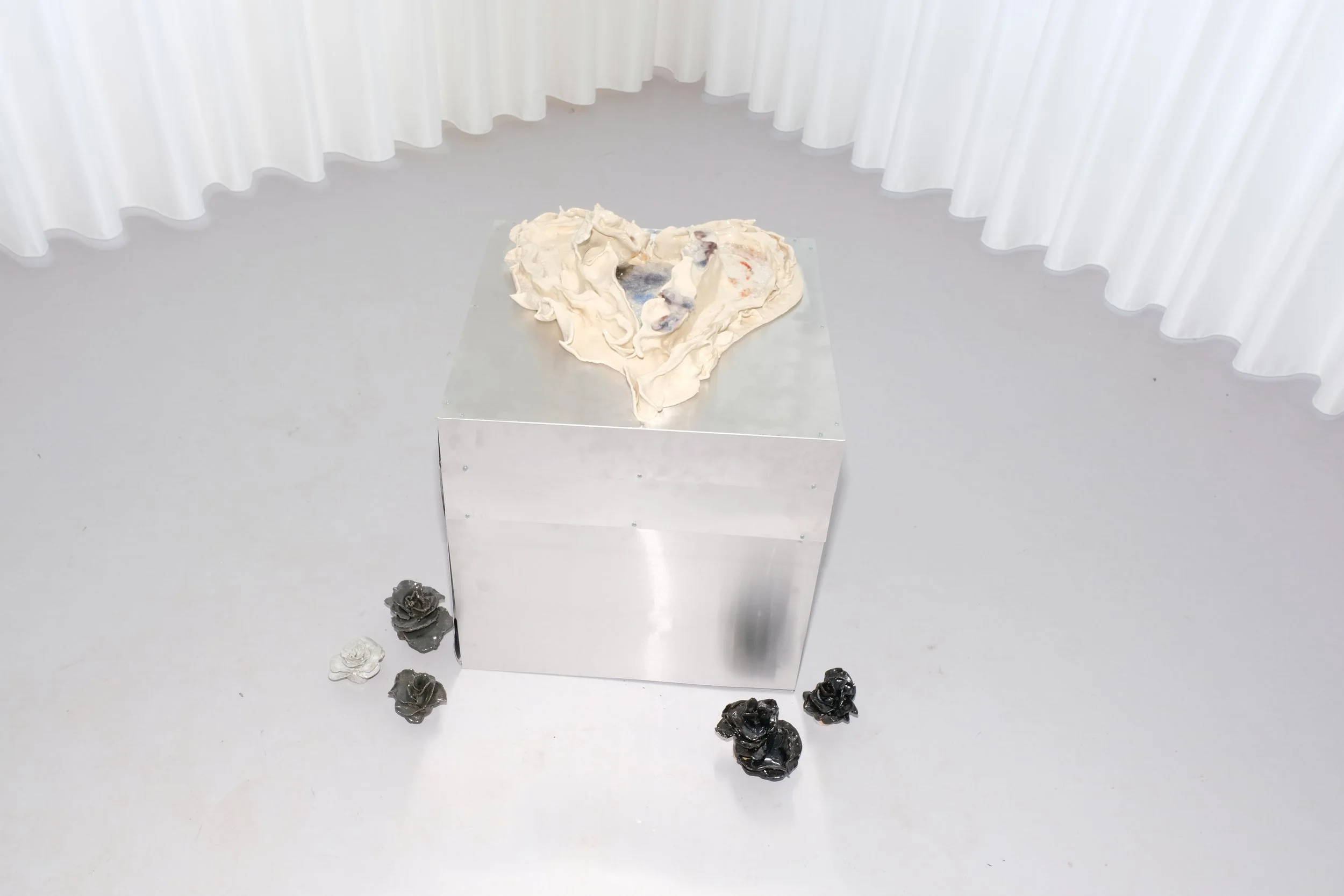Eros, understood as a feeling of lack, drives people to desire what they are missing. The heartbreaking pain and the ambivalence of beauty and desire, which can drive a person mad, are at the center of this work. Through metaphors and symbols depicted in ceramics and steel, the duality of love and pain is made visible. The pursuit of what is unattainable is a central part of the human experience of love and desire. Eros arises from a sense of lack. This constant striving and feeling of deficiency make Eros a state of perpetual longing.